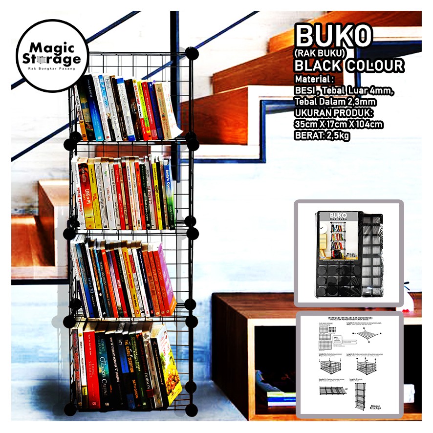 murah original BUKO rak buku besi susun 4 hitam portable Sumber : shopee.co.id
